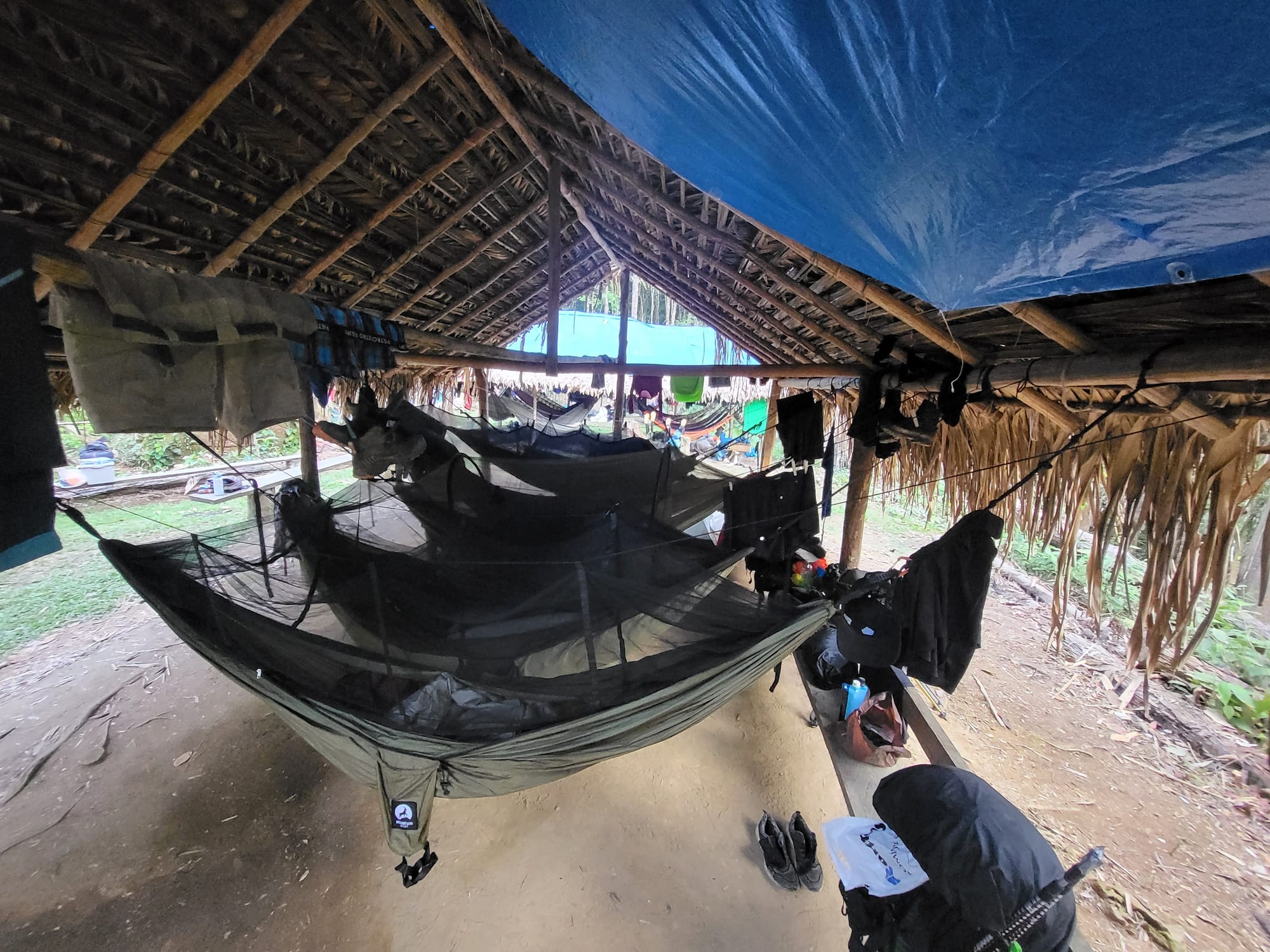 Z Maturacá je to ještě asi 2-3 hodiny lodí k začátku treku. Pak už jen 6 dní nahoru a 4 dolů. Je to bezmála 70 kilometrů džunglí, občas bahýnkem, a nakonec trochu po skále. O jídlo se starají Yanomami, stejně jako o správný směr. Vodu naberete v říčkách a ty poslouží i jako koupelna a vítané osvěžení. Spí se v houpacích sítích pod přístřešky bez stěn. Sem tam přijde na návštěvu big žaba, sem tam jen žaba s kámošem škorpionem, ale jinak byl prales až podivně života prostý. Zvířátek jsme
